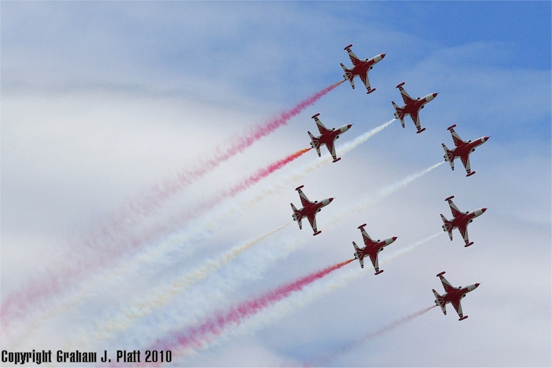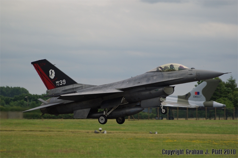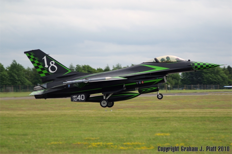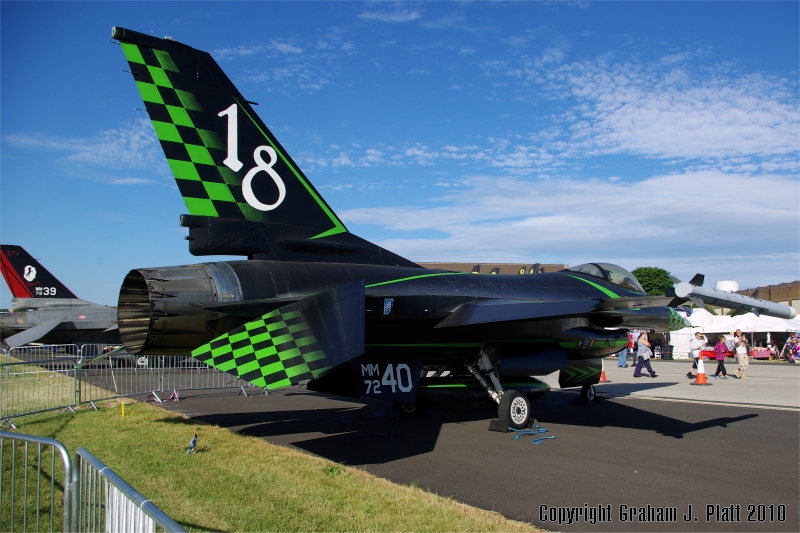 This year's Waddington airshow saw a return to form from the poor efforts of previous years. There did not seem to have been the quantity of cancellations that have plagued the show in recent years, and some nice foreign participation was also secured. The Italian F-16s and the USAFE F-16s were welcome visitors, as was the Army Defender ZH004 as I've been missing photos of it for a while now. The weather on Friday started dull, then brightened up hugely in the afternoon. Sunday was cloudy all day with a very strong gusty wind all day which led to the cancellation of a number of flying displays including the WW1 display and the Battle of Britain Memorial Flight. Conversely, after the disappointment of previous years, the Vulcan flew on both days, with Saturday's display appearing the more spirited of the two. The light was, as usual for the venue, dodgy due to the crowdline being south-facing, so you shoot into the sun for a lot of the day. The static layout was, for the most part, well done. Notable howlers included the almost nose-on placement of the 2 special scheme ItAF F-16s, the sheer amount of clutter around the RC135 which rendered it pretty much unphotographable, the wedging-in of the 2 Spangdahlem F-16s (again in Alpha) so that you ccould only photograph them into the sun, and the Tornado F-3 on the end of the main static line, where unless you knelt down, and thus got barrier even further up your shot, you ended up with a 'Disco Fever' sign from the fairground right over the spine of the jet. Hopefully the issues will be sorted next year.